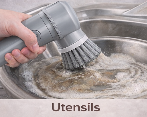 Clean pots, pans, dishes, and utensils effortlessly. The rotating brush removes stubborn food residue without manual scrubbing.